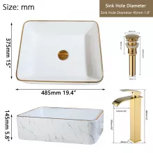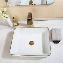- Elegant Gold Edge: The gold edge adds a luxurious feel to the classic white ceramic sink, making it a perfect fit for upscale bathroom decors.