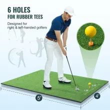Built to take on thousands of swings, this mat is equipped with a non-slip EVA+PE backing to keep it secure during powerful hits. The anti-tearing layer keeps the turf in top shape, while the 5 ft x 4 ft surface area provides ample room for movement and practice. With six tee holes spaced across the mat, it’s suitable for both right and left-handed golfers, and the design allows rotation to prevent wear in a single spot.
