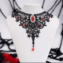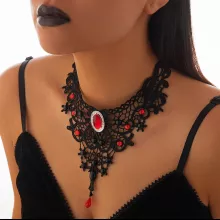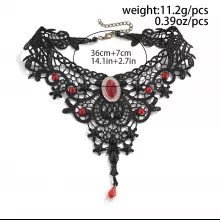 This elegant choker combines classic Gothic lace with a punk-inspired twist. The zinc alloy chain is durable yet lightweight, and the blood-red teardrop pendant adds a chillingly beautiful focal point. Rhinestones embedded in the design catch the light, bringing a touch of sparkle to its dark allure. With an adjustable O-chain clasp, it fits most neck sizes comfortably.