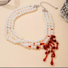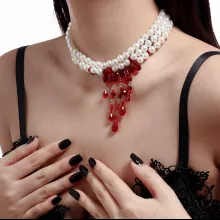 Step into a world of mystique and allure with this Gothic Red Crystal Pearl Choker Necklace. Designed for bold women who embrace their individuality, this multilayered choker blends elegance with a hint of the macabre. Featuring faux pearl bead chains and a striking red blood drop crystal centerpiece, this necklace is your perfect companion for Halloween, costume parties, or making a dramatic entrance at any evening event.