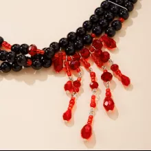 Its neo-Gothic design, detailed with delicate water drop patterns and beaded layers, evokes the charm of vintage gothic fashion with a modern edge. Whether you’re dressing up as a dark queen, a vampire siren, or simply want to add a bold twist to your outfit, this choker creates an unforgettable impression.