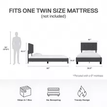 This Gray Linen Upholstered Twin Bed is the perfect solution for your kid’s bedroom. With a size of 44”W x 80”D x 42.5”H, it’s ideal for smaller spaces while still providing plenty of room for rest and play. The sturdy construction supports up to 250 lbs, making it suitable for teens and adults as well. Whether you’re upgrading an existing space or furnishing a new room, this bed’s modern design and practical features make it a fantastic choice.