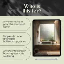 This guide is perfect for homeowners, renters, and design enthusiasts who value self-care, wellness, and beautiful interiors. If you’ve been craving a peaceful escape without leaving home, this digital resource will help you make it happen.