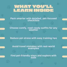 This guide is perfect for pet parents planning their first big trip—or seasoned travelers looking to improve the ride. If you’re wondering how to travel with a dog or cat, what gear you’ll need, or even what to wear on a road trip with pets, this digital resource has everything covered. It’s designed with ease and comfort in mind, so you and your pet can explore the world together—worry-free.