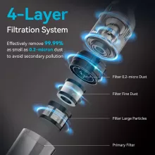 - High-Efficiency Filtration: A 4-layer system captures up to 99.99% of dust as small as 0.2 microns, leaving your space fresh and clean.