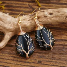 These Handmade Black Agate Crystal Teardrop Earrings are more than just jewelry—they are a work of art. Each pair is meticulously handcrafted, combining the calming properties of black agate with the timeless elegance of the tree of life symbol. The design is inspired by nature, making them perfect for those who appreciate bohemian and earthy aesthetics. The combination of the irregular shape of the black agate stones and the wire-wrapped tree of life charm creates a distinctive look that sets these earrings apart from ordinary accessories.
