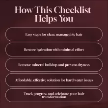 This checklist is perfect for anyone experiencing the damaging effects of hard water on their hair. Whether you live in an area with high water hardness or simply want to prevent future buildup, this guide will help you restore your hair’s natural beauty. It’s ideal for those who want to take a proactive approach to hair health and avoid expensive salon treatments.