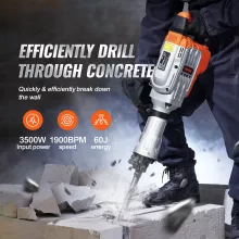 - High Power & Precision: Equipped with a 3500W motor and 60J impact energy, this jack hammer is designed to handle the toughest concrete and metalworking projects, providing consistent performance and precise results.