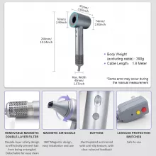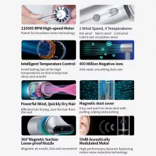 - 110,000 RPM high-speed motor for ultra-fast drying with 1300W power efficiency.