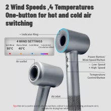 - 48 m/s maximum wind speed dries hair 5 times faster than traditional dryers.