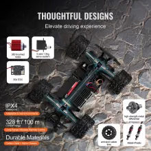 - Waterproof & Durable: Featuring an IPX4 waterproof rating, this RC truck can withstand rain and muddy environments. The rugged chassis, nylon & carbon steel construction, and durable suspension ensure long-lasting performance in tough conditions.