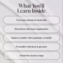 Other resources may focus on style or minimalism alone, but this guide balances function, comfort, and design. Plus, with exclusive AI prompts, you’ll discover how to personalize and optimize your workspace faster than ever.