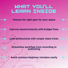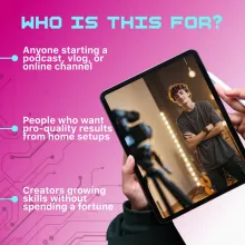 Your voice, your message, and your story deserve to be heard and seen at their best. Download this digital guide now and start creating high-quality content from the comfort of your home. Perfect for beginners, creators, podcasters, and anyone ready to elevate their DIY studio setup.