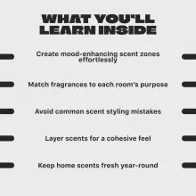 Unlike other resources, this digital download blends interior styling principles with scent science, giving you a practical, beautiful, and achievable approach to home fragrance. It’s not just about buying candles—it’s about curating an experience that’s truly yours.