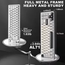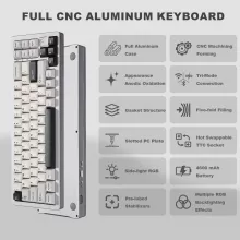 The Hot Swap 71-Key Wireless Mechanical Gaming Keyboard is a true masterpiece for anyone looking for a top-tier typing and gaming experience. Crafted with a durable CNC aluminum frame, this keyboard offers a sleek, premium feel with an anodized finish that ensures long-lasting color and resistance to wear and tear. The innovative gasket-mounted design minimizes noise and vibrations, delivering a smoother, quieter typing experience that stands out in any environment.