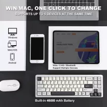 Whether you’re working, gaming, or just typing up documents, the versatility of this keyboard will not disappoint. Equipped with a built-in 4600mAh battery, you can easily switch between multiple connection modes—Bluetooth, 2.4GHz wireless, or wired via Type-C. The intuitive side button allows you to toggle between modes without hassle, and with FN+Q/W/E, you can easily pair with different devices like PCs, Macs, or tablets. Say goodbye to tangled wires and enjoy seamless connections for work or play.