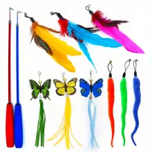 These cat toys are crafted from soft, colorful feathers, creating an inviting texture and movement that cats love. The built-in bell adds an engaging sound to encourage chasing and pouncing, helping your cat stay mentally and physically sharp. Lightweight and easy to handle, each wand lets you interact directly with your pet, strengthening your bond while providing healthy exercise. The 11-pack ensures you always have a fresh toy ready, perfect for rotating through play sessions to keep your cat’s interest high.
