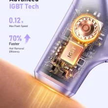 This device features advanced IPL (Intense Pulsed Light) technology that uses gentle light pulses to target and heat up hair follicles, gradually reducing hair growth with consistent use. Thanks to the generous 5.2 in² flash window, it covers larger areas in less time, making full-body treatment possible in just 8 minutes. It’s safe, customizable, and nearly painless thanks to the dual IGBT pulse technology that delivers fast consecutive flashes, reducing discomfort while enhancing results.