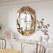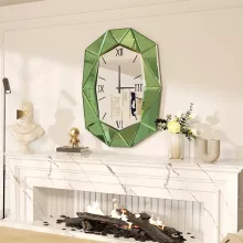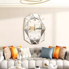 Elevate your wall decor with this striking Irregular Beveled Mirror Wall Clock, a modern timepiece that fuses classic charm with luxurious design. Featuring a distinctive geometric silhouette, this wall clock is a true statement piece. Its shimmering, beveled diamond frame—available in silver, tawny brown, or green—catches and reflects light beautifully from every angle, enhancing the ambiance of any room it graces.