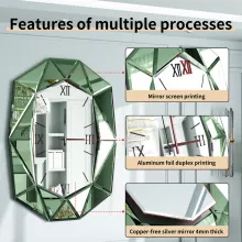 From its premium materials to its artistic design, this mirror wall clock is built to impress and last. Crafted from durable MDF and high-quality, copper-free glass, it’s both sturdy and elegant. The 5mm thick beveled mirror edges add depth and dimension, transforming this functional item into a stunning decorative feature.