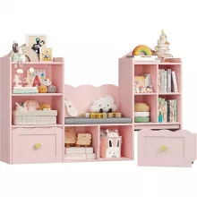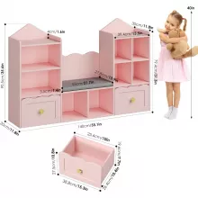 - All-in-One Design: Combines a bookshelf, toy organizer, and reading bench in one.