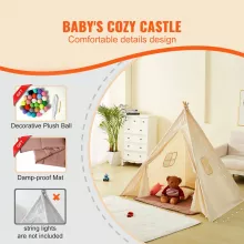 This kids’ play tent isn’t just functional – it’s beautifully designed with adorable plush decorative balls that add a whimsical touch. A soft, damp-proof mat provides extra comfort and protection, so your child can sit, crawl, or nap without worry. These thoughtful details make the tent both stylish and practical for any playroom or backyard setup.