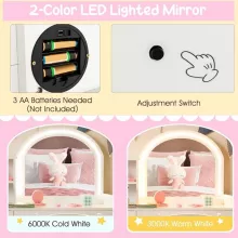 - 2-Color LED Lighted Mirror: Cold white and warm white settings offer a realistic, gentle glow at the press of a button. (Requires 3 AA batteries, not included)
