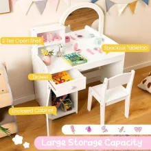 This kids vanity is more than just a pretty place to get ready—it’s also a smart storage solution. With a spacious tabletop, 2-tier open shelf, smooth-gliding drawer, and a lower cabinet, your child can keep their favorite accessories, makeup kits, books, and toys neatly organized. Whether used for pretend play or as a functional study nook, this set helps inspire independence and tidy habits.