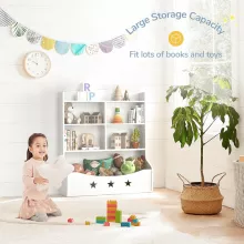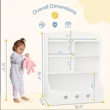 With a child-friendly height, this bookshelf allows kids to easily access and organize their favorite books and toys without assistance. Its modern grey and white color scheme blends seamlessly with various room styles, making it a stylish yet functional choice for any home.