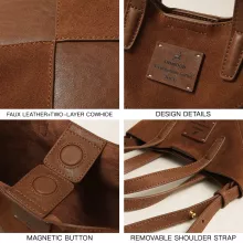 Designed for women who carry it all and still want to look chic, this Large Capacity Brown Tote Bag blends fashion with function. Made from high-quality split leather and soft suede splicing, it delivers a sophisticated, designer-inspired look without compromising durability. With its rich, earthy tone and structured bucket shape, this handbag transitions seamlessly from morning errands to evening dinners.