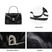 Crafted from premium split leather and lined with soft synthetic leather, this tote offers a luxurious feel and a polished finish. With dimensions of approximately 10.2 x 4.5 x 7.5 inches, it delivers impressive storage without bulk. The soft structure ensures flexibility, while the elegant hasp closure keeps your belongings secure. A single top handle and an adjustable crossbody strap give you multiple ways to wear it, adapting effortlessly to your routine.