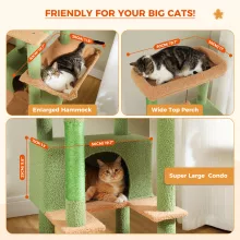 Crafted with high-quality materials, this sturdy cat tree ensures safety and stability for your large cat to leap, scratch, and play. The heavy-duty structure comes with an anti-toppling strap, providing extra security. The large hammock and condos give your cat plenty of room to relax and feel cozy, while the sisal-covered posts are perfect for scratching and keeping your cat’s claws healthy. Available in multiple colors, it will complement any home decor and create a cozy space for your feline friend to enjoy.