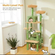 This 184cm tall cat tree is perfect for multi-cat households, especially larger breeds like Maine Coons and Ragdolls, who love to stretch, play, and nap in a spacious environment. With wide hammocks and super-large condos, even your biggest cats will feel right at home. The vertical and horizontal scratching surfaces keep them entertained and help prevent destructive behavior. Plus, the structure’s durability ensures it stands up to heavy use, so it’s the perfect long-term investment for your cats’ happiness.