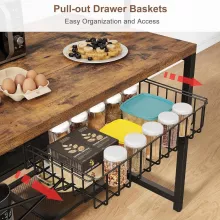 Upgrade your kitchen with this versatile and spacious kitchen island, designed for modern homes. Whether you’re prepping meals, storing essentials, or entertaining guests, this multi-functional piece offers everything you need. With a large tabletop, open shelving, and a pull-out mesh basket, this island provides generous storage while adding a stylish touch to your space. Ideal for kitchens, dining areas, and open-concept layouts, it also doubles as a bar table for casual gatherings.