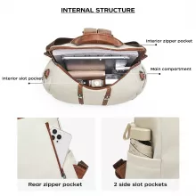 - Multiple compartments including interior slot, zipper, and main compartments for organized storage