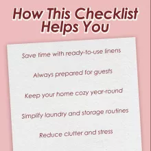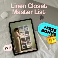Whether you’re stocking up from scratch or streamlining what you already own, the Linen Closet Master List is your go-to tool for creating a perfectly curated home linen collection. Download today and start transforming your linen closet into a beautifully organized, guest-ready space—without the overwhelm.