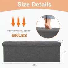 Not only does it help keep your home neat and tidy, but its sturdy construction also ensures that it will stand the test of time, supporting up to 350 pounds. The ability to fold it away when not in use makes it an ideal choice for small spaces, and the simple, quick assembly process means you can enjoy your new storage bench in no time.