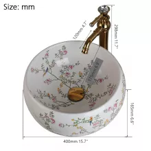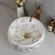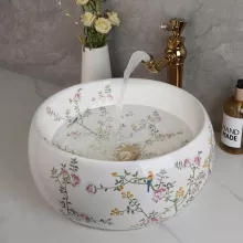 Transform your bathroom into a serene retreat with this stunning Ceramic Bathroom Vessel Sink Set. Featuring an exquisite hand-painted flower and bird pattern, this round vanity sink brings a touch of nature and art into your space. Designed for the discerning homeowner, this high-quality sink set is ideal for those who seek beauty and functionality in their bathroom fixtures.