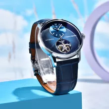 With its clean, numberless dial and polished silhouette, this watch is a statement piece without being overstated. The 316L stainless steel case boasts a mirror-like finish, while the leather strap offers unmatched comfort and elegance. Choose from four sophisticated color options—deep black, ocean blue, golden brown, or sleek silver with black accents—to suit your personal style.