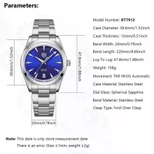 Crafted from premium stainless steel and protected by durable spherical sapphire glass, this watch doesn’t just look sharp—it’s built to last. At its core is the reliable TMI NH35 automatic movement, offering accurate, self-winding performance so you can keep time effortlessly. The folding clasp with safety adds comfort and security, while the detailed dial with Arabic numeral markers ensures quick, easy reading of the time. With a 100-meter water resistance rating, it’s more than just a looker—it’s ready for real-world use.