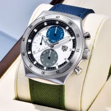 Step up your style game with this sophisticated men’s chronograph quartz watch — a perfect fusion of fashion, function, and durability. Designed for the modern man who values both luxury and performance, this watch features a bold, clean look with a numberless dial, luminous hands, and a durable nylon band that complements any outfit. Whether you’re headed to the office, out on an adventure, or dressing up for the evening, this watch delivers statement-making versatility.