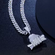 Crafted from high-grade 925 sterling silver, this necklace is built to last. The pendant is inlaid with VVS D Color Moissanite, a gemstone known for its incredible brilliance and fire, rivaling even diamonds. Its polished finish gives it a sleek, modern look, making it the perfect piece for hip-hop fashion lovers and jewelry enthusiasts alike.