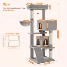 Crafted with high-quality materials, this cat tree ensures a safe and enjoyable experience for your furry friend. The multiple platforms, cozy condos, and plush perches provide endless opportunities for play and relaxation. Equipped with sturdy scratching posts wrapped in durable sisal, this cat tree satisfies your cat’s natural urge to scratch while protecting your furniture from claw damage.