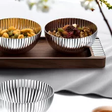 Bring a refined, modern touch to your home with this stunning Luxury Nordic Stainless Steel Dessert Plate with Walnut Tray. Carefully designed for those who appreciate understated elegance, this set transforms everyday dining into a luxurious experience. Whether you’re serving artisanal desserts, fresh fruits, or appetizers, this designer plate and bowl set offers a flawless combination of style and function.
