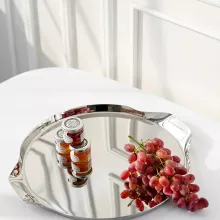 Bring elegance to any room with this luxury round mirror tray crafted from high-quality stainless steel and finished with a flawless mirror polish. Designed with clean Scandinavian lines and a reflective surface, this tray doubles as both a functional organizer and a stunning decorative accent. Whether displayed on a center table, vanity, or hotel suite countertop, it adds instant sophistication to your surroundings.