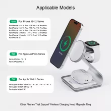The station supports 15W magnetic charging for iPhone, 5W for AirPods, and fast charging for Apple Watch. Built with a premium aluminum alloy body, it dissipates heat quickly, ensuring stable power delivery without overheating. Intelligent protection automatically stops charging when your device is fully powered, keeping your battery safe all night long.