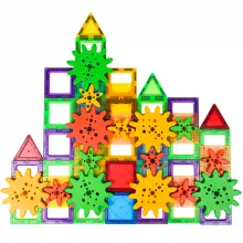 Made from durable ABS plastic and built-in magnets, the blocks easily snap together and stay strong through even the most ambitious creations. The addition of rotating gear wheels adds mechanical movement and complexity, teaching children about cause and effect, design thinking, and spatial awareness—all while having a blast.