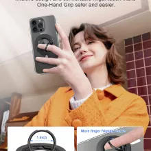 Elevate the way you hold, prop, and interact with your phone. This magnetic phone ring holder is designed to seamlessly snap onto any MagSafe-compatible phone or case, offering a strong hold and multipurpose functionality in a sleek, compact accessory. Whether you’re texting with one hand, taking flawless selfies, or binge-watching your favorite shows hands-free, this ring holder has you covered.
