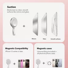 The strong suction cup easily attaches to mirrors, windows, or any smooth, clean surface, while the magnetic side offers instant hold and release for MagSafe-compatible devices. It also includes magnetic rings, making it perfect for both iPhones and Android phones. Its compact 4.72 x 2.4 x 0.51 inch design makes it easy to carry, while the silky-smooth silicone finish feels great in your hand.