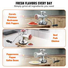 The manual grinder features dual fixation methods—a strong suction base and a secure steel clamp—so it stays rock-steady while in use. The 0.79″–1.97″ clamp range fits most kitchen countertops with ease. The sharp internal blades and spiral auger are engineered for precision cutting, so you get smooth, clog-free grinding, even with semi-frozen meat. From beef and chicken to low-moisture vegetables like mushrooms or peppers, this grinder handles it all.